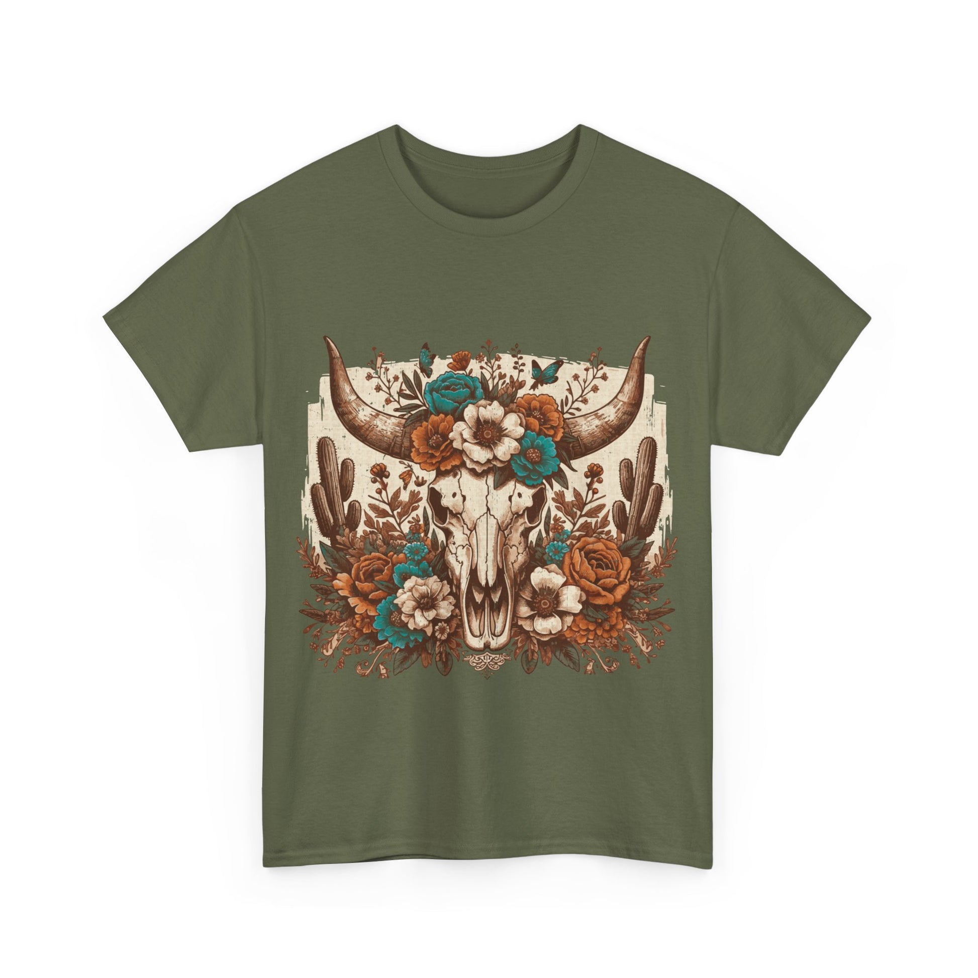 Cow Skull Shirt, Cowgirl Shirt, Skull Shirt, Western Clothing, Cowboy, Boho Cow Skull, Bull Shull Shirt, Longhorn Shirt